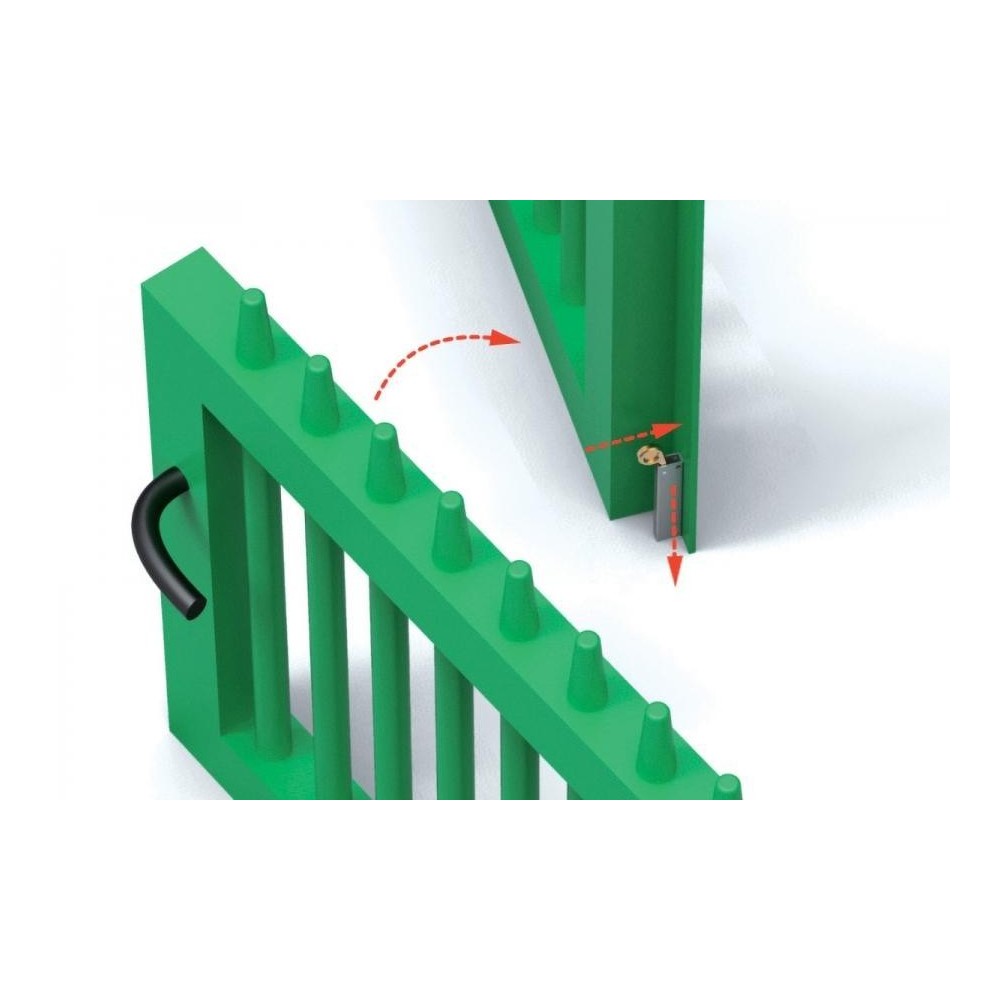 Automatic bollard for double-leaf gates in galvanized iron and brass.
