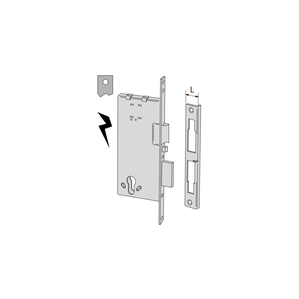Electric lock art. 1201170 with ambidextrous cylinder to be inserted, entry 70 for wooden doors, 2 throws, front 22 mm without cylinder.