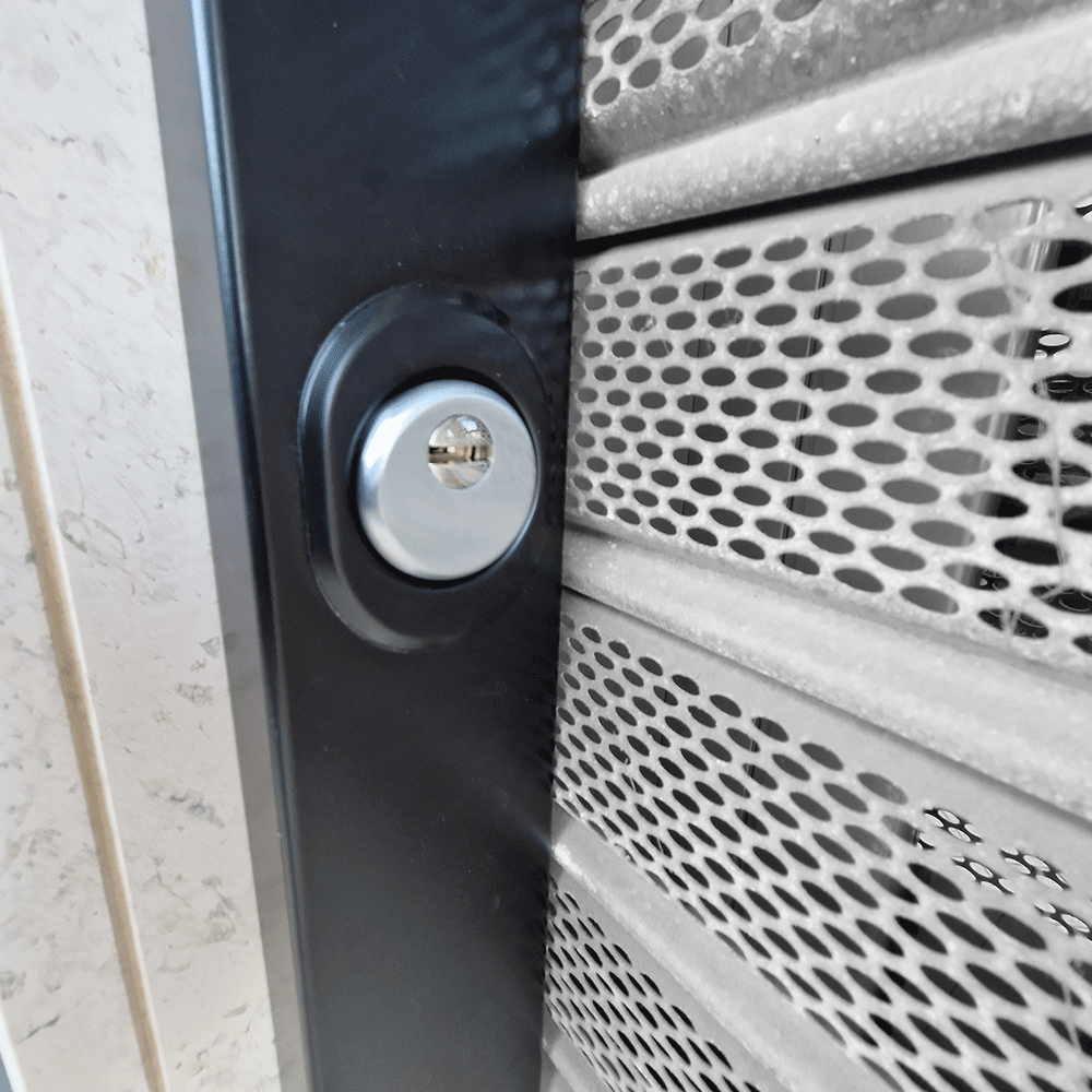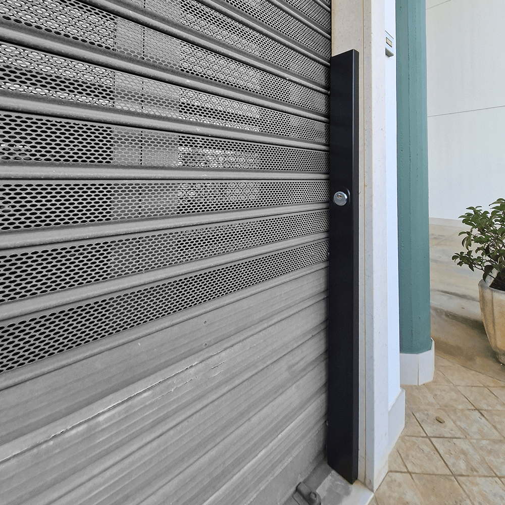 Vertical lock with European cylinder with 3 locks. Security system for vertical band roller shutters for shops garages car boxes offices and homes.