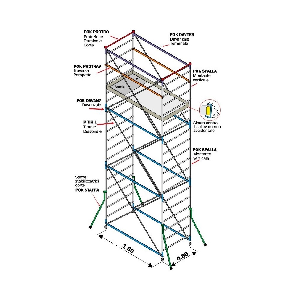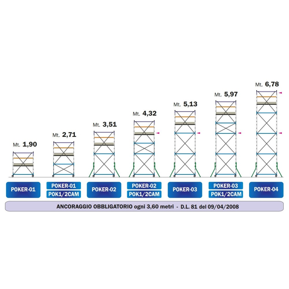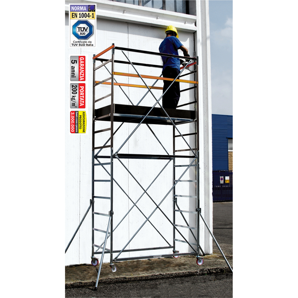 • Rectangular profile steps (30 x 20 mm), with deep non-slip grooves, spaced 27 cm apart, which allow each upright to be used as a vertical ladder and to easily mount worktops and intermediate parapets.