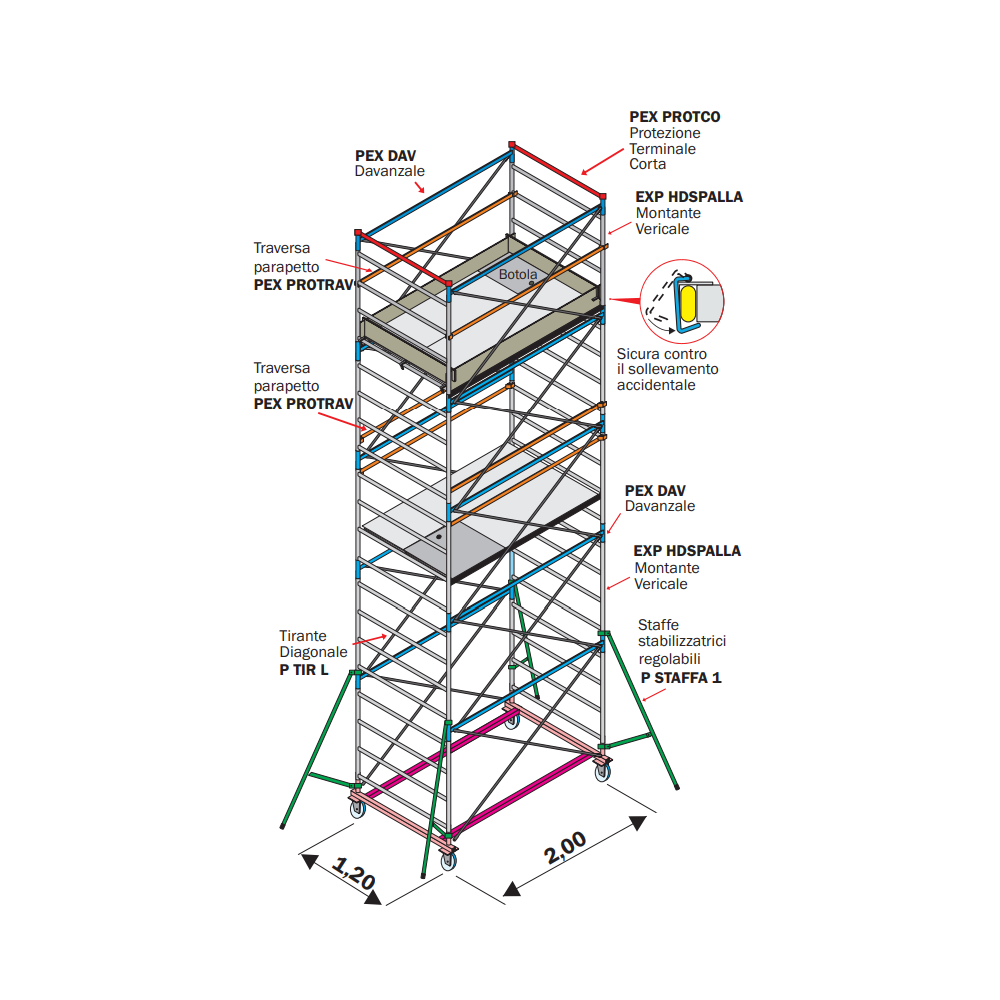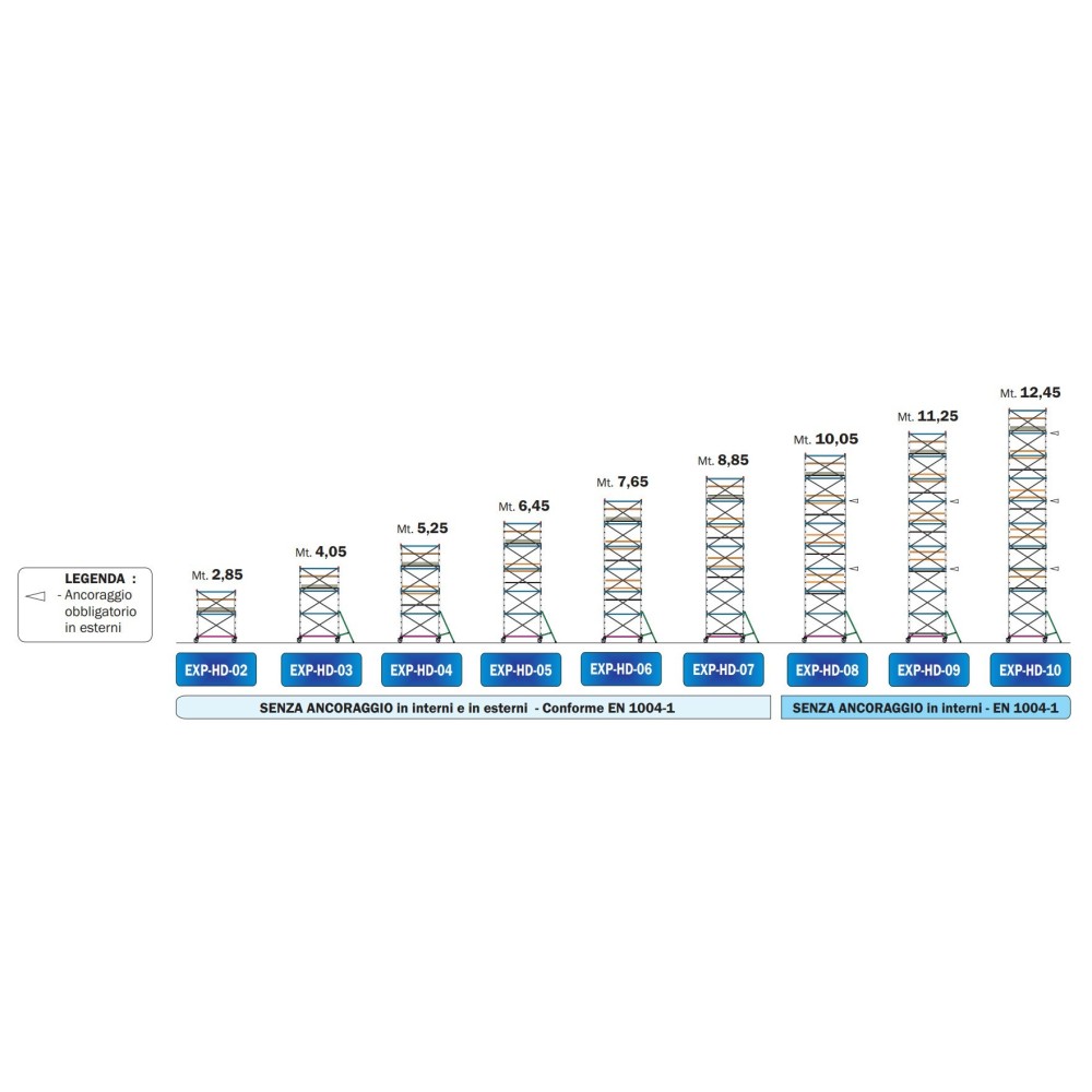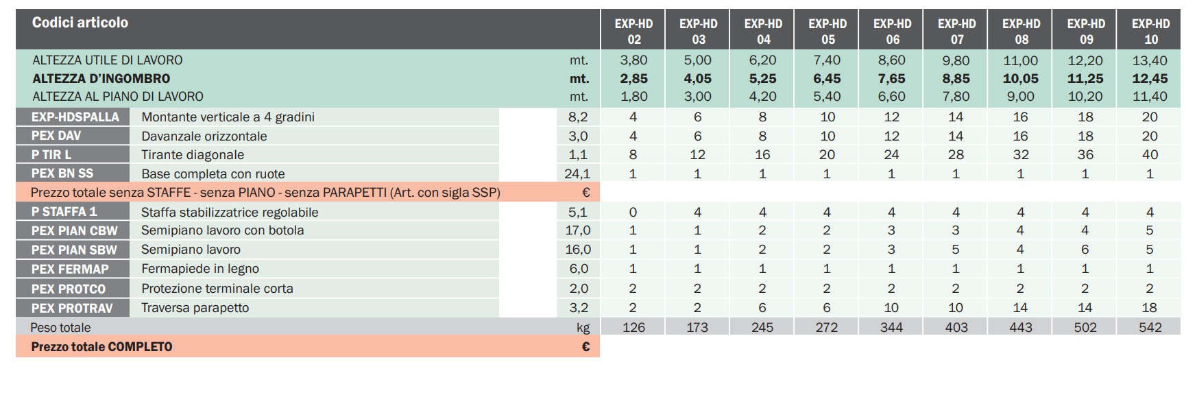 NB For effective use of the product, it is necessary to position the worktops at a distance of no more than 2.10 m from each other and equipped with the relevant intermediate parapets.
