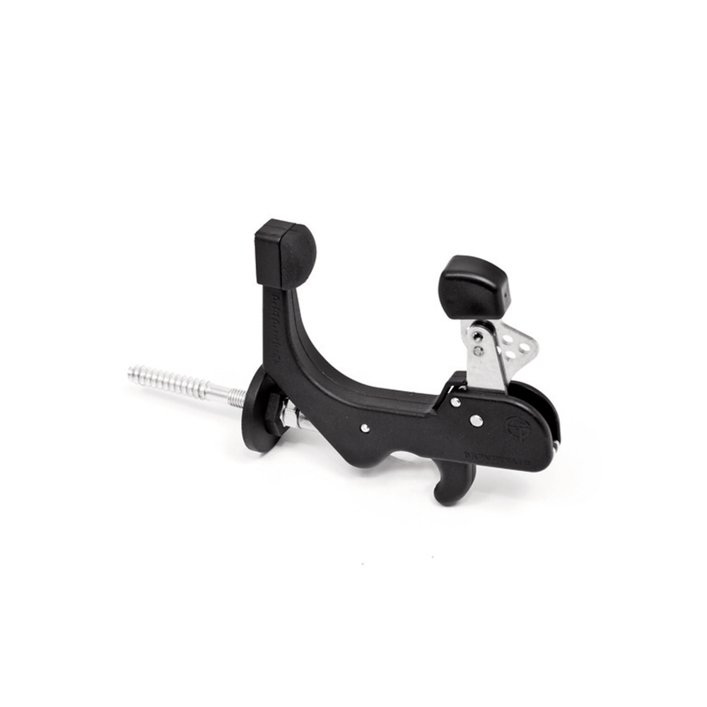 Locking system for stainless steel shutters and without internal springs with 8 adjustment sizes for locking the frame from a minimum of 35 mm to a maximum of 69 mm reachable by also inverting the rubber bumper located on the part of the stop. The release of the door is done manually while the locking of the door protected by the two rubber bumpers occurs automatically by the effect of a push or a gust of wind. The supplied anchoring screw in millimetric part allows to distance the accessory from the wall without the aid of compensator shims up to 28 mm by simply blocking the nut of the stud with a 20 wrench. The anchoring screw can also be replaced with an M8 threaded bar or similar of variable length based on needs. The "Pepito" can be applied on all aluminum, wood, PVC and iron frames.