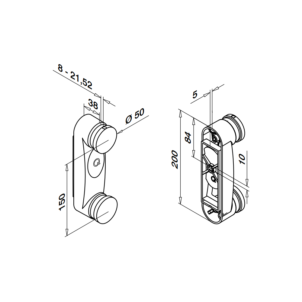 Q-Railing - adattatore per vetro con base piatta Easy Glass MOD 0766
