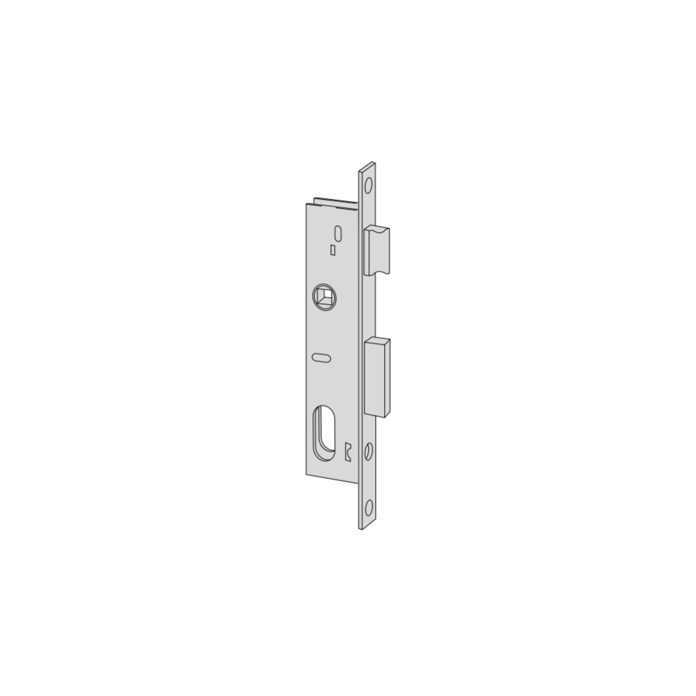 Serratura art. 4422125 a cilindro ovale da infilare entrata 25 per montanti una mandata interasse 69 mm frontale 20 mm senza cilindro.