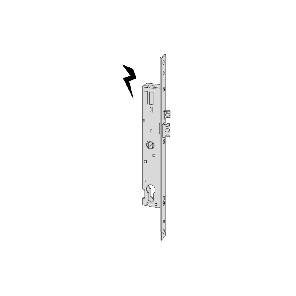 Elettroserratura art. 1620535 a cilindro ambidestra da infilare entrata 35 per montanti interasse 85 mm frontale 22 mm senza cilindro.