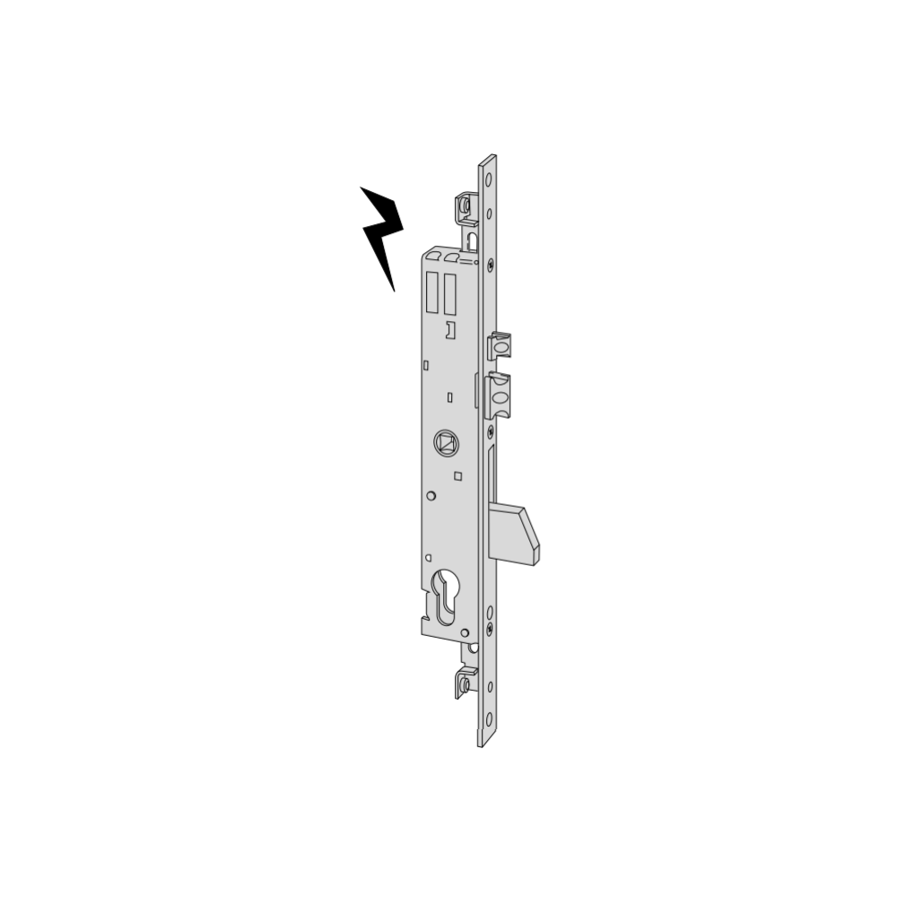 Elettroserratura art. 1622525 a catenaccio basculante ambidestra da infilare entrata 25 per montanti interasse 85 mm frontale 22 mm senza cilindro.