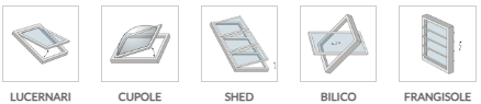✅ Per lucernari, cupole, sporgere, shed, vasistas, pale frangisole e finestre scorrevoli